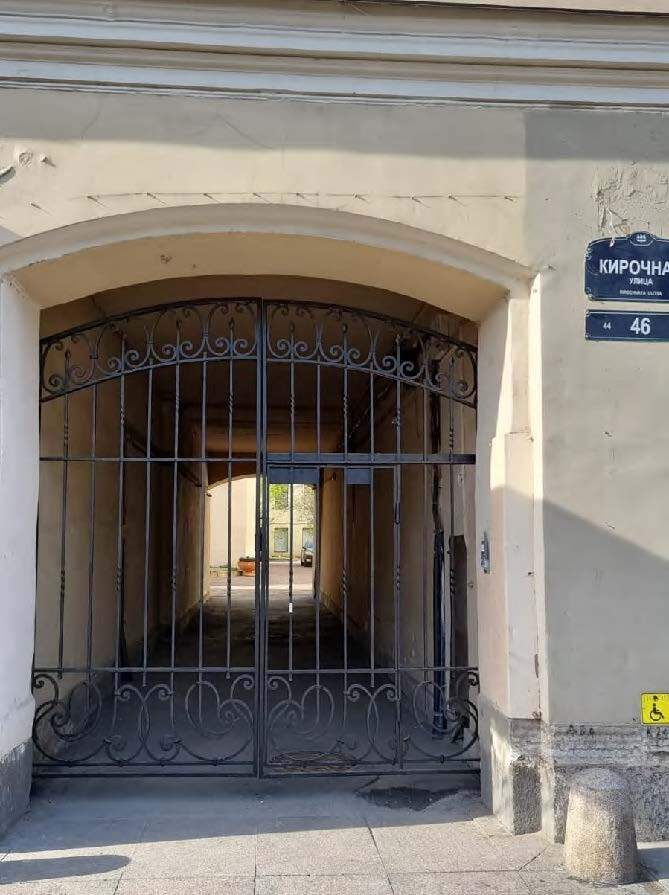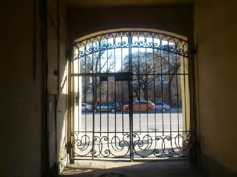 Въездные ворота в арку дома 46 на Кирочной улице сохранились, требуют ремонта, восстановления.